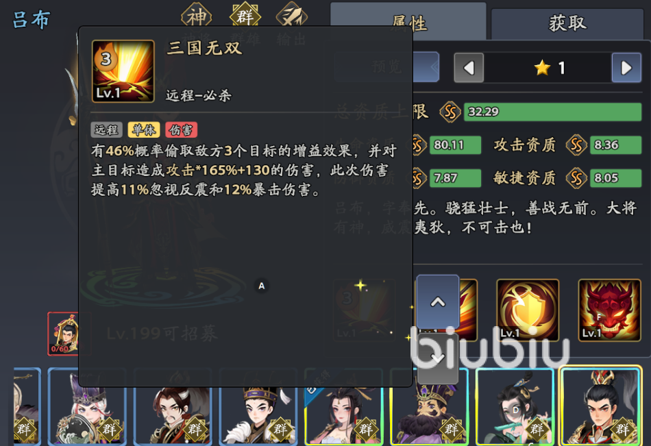 吕布:单点秒杀核心,【三国无双】大招配合【命中提升】被动,无视敌方防御,优先击杀敌方主C;