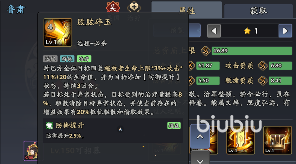 双治疗联动:鲁肃主奶,提供全体回血+驱散+防御增益;刘备副坦+副奶,【结义】状态提升友军治疗效果(最高27.6%),与鲁肃形成治疗链。