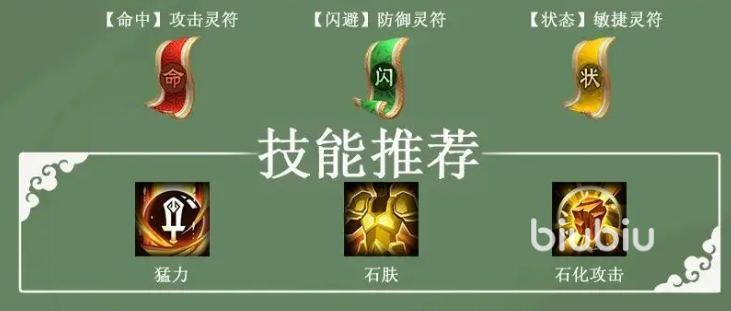 生命灵符推荐带技能“石肤”和“重生”,“石肤”能忽视一定的暴击,降低受到的远程伤害,重生会在死亡时有概率重生,最后敏捷灵符推荐带“石化攻击”和“冰冻攻击”,这两分别能在普攻时,有概率对目标造成石化和冰冻。
