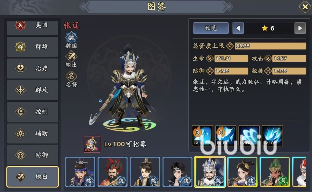 首先是在输出方面,小编认为目前最值得选择的是吕布、董卓、关羽和张辽这4个。张辽对于敌方单体目标有着很强的输出能力,还可以根据伤害比例恢复生命值,并有额外的暴击几率和对目标造成惊吓等。关羽可为自身添加武圣状态,对于单个目标有额外效果,且能附加命中和暴击,武圣对于伤害加成、吸血提升和无视反震方面的属性,使得关羽非常适合用来切对方的单体目标。