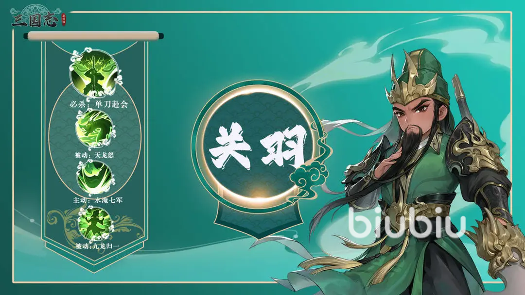 也是输出,若马超是强力单体输出,他就是实力强横的群攻武将,大招兼具爆发和沉默,在攻速流阵容中非常好用,敏捷很高,0怒就能使用远程技能,成型后可直接点杀敌方后排核心角色,在战斗节奏快的回合中十分的强势。被动1敌方每有1个攻击力低于自身的单位,获得1层“武圣”,最高叠3层。被动2己方队友,或攻击力低于自身的敌方单位死亡时,有29.9%的概率回复自己20.3%生命上限的血量,持续3轮叠加到3层后变为固有效果,他自己击杀目标,一定触发该被动。