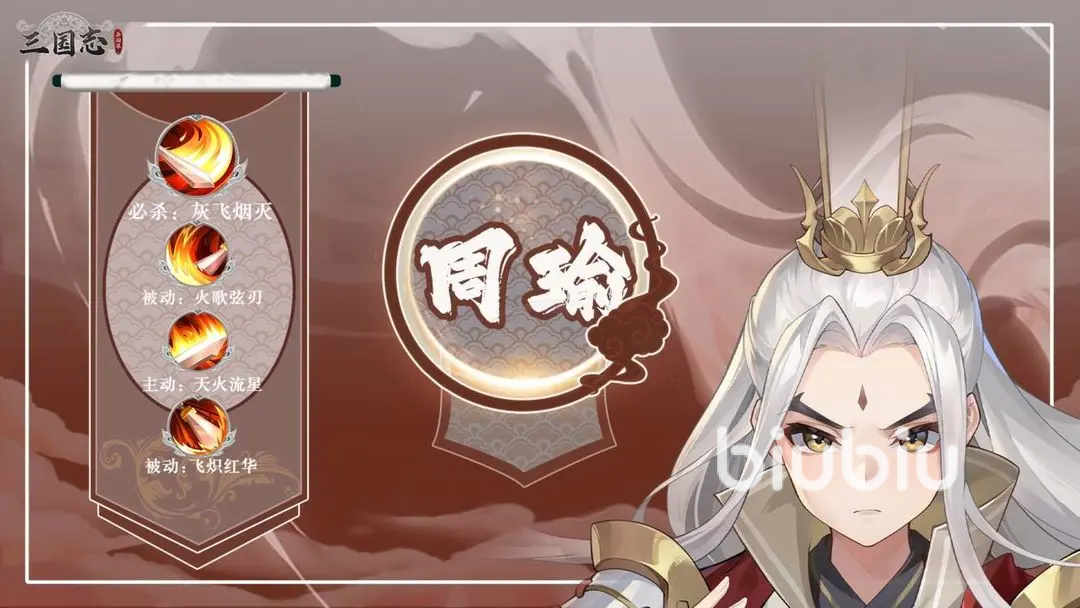 他是一名辅助武将,主要作用就是添加护盾,破盾还能造成伤害,他的血量就是用来打伤害的,对于脆皮队伍有较好的克制作用,生存能力超强,能给友方提供护盾,增强自保能力。被动1在回合结束时,有30.8%的概率对己方单个目标添加炎之盾,被动2则是提高炎之盾效果,护盾值提升45.6%,碎盾的反弹效果提升29.8%,有30.3%的几率对碎盾反弹目标释放一次主动技。