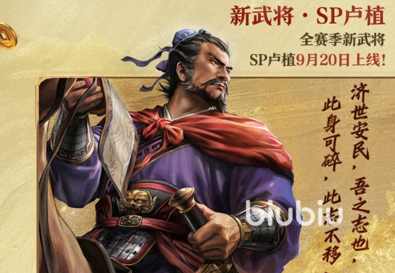 首先来看一下新武将,SP卢植将在9月20号登场,其战法可以给全队带来不俗的统率加成,并且具有倒戈以及攻心的buff,同时还会根据场上对手的战法类型来为己方提供减伤(兵刃类)。传承技“雁形阵”能转移敌方增益、己方负面效果,有可能会成为重要战法选择之一。