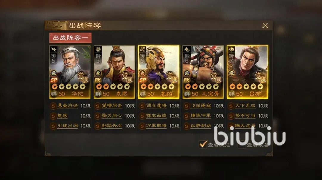 若是小伙伴们想要在短期内快速提升战力,不妨采用文武盾。用sp袁绍、徐晁和张飞,即使在航母区和满红进行正面对抗也完全无惧。在战法层面,主将使用文武双全和疾风骤雨,徐晁使用盛气凌敌和潜龙阵,张飞则用裸衣血战和摧锋断刀。张角群弓就属于文武盾的变种,也可把它当成高配版的文武盾,具体组合是主将加上张角和华佗,在战法层面,主将则使用抚辑军民和草船借箭。