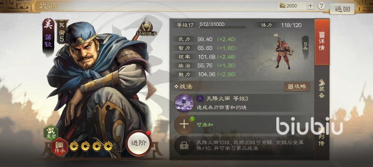 蒋钦,吴国名将,战法搭配屠几上肉,能够同时造成兵刃和谋略两种伤害。