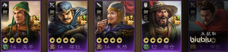 这个阵容组建难度不高,大多刚入坑的玩家都能组建成功。而且都是紫将培养成本也很低,升到高星也容易。关平的技能可以提供伤害增益,蒋欣能打出混合伤害,朱然的异常伤害在关平buff之下可以打出更好的效果,周仓的范围伤害很高作为阵容里的群C担当,再配以审配的治疗能力,队伍就成型了。有异常有增益有群伤有治疗,而且武将可携带的兵种类型也很多,骑兵、弓兵、盾兵都有,基本上能应付目前的大多数战斗了,尤其适合新手开荒。当然这个阵容到了后期在强度上的差距就显现出来了,建议随着游戏深入一点点更换一些上位替代,直至都替换成更强力的武将。这样一来这套阵容也算是完成了自己的使命了。