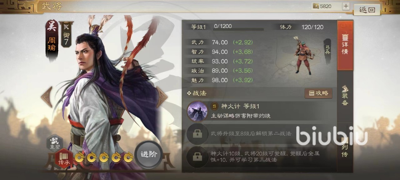 朱然,吴国名将,大司马。战法使用乘人之危,打异常状态敌人谋略伤害提升。