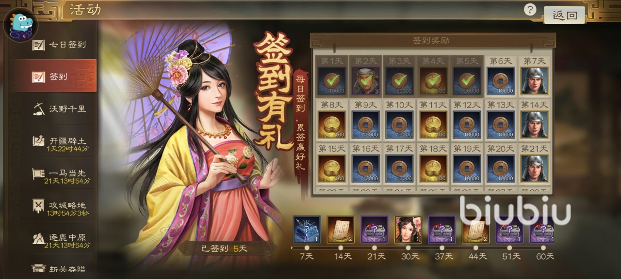 试玩活动主要就是开疆拓土可以有金铢的奖励,这对内测玩家比较的友好,还有七日签到赠送两个金色的强力武将曹仁和黄忠,累计三十天还有小乔相赠,玩家参加联盟还能跟着大佬开拓势力,完成各种任务联盟商店的奖励异常的丰富。开拓土地还能参加限定时间的赛季活动,奖励玩家互相攻占增加自己的声望。当然想要玩活动玩家就要实力足够,不然就是给别人按着打,需要玩家努力发展内政和自己部队的实力,一般玩家活动参加拿个初始奖励,大佬玩家当然是拔得头筹的。
