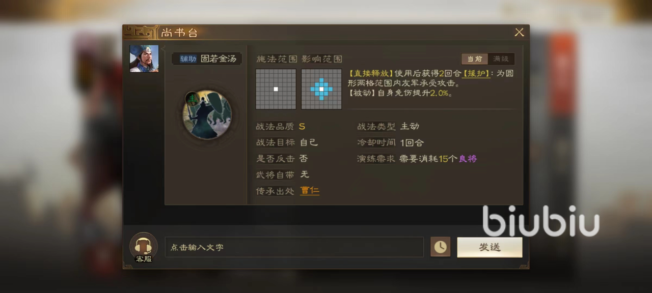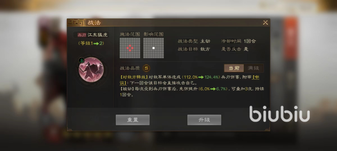 自身的战法江东猛虎也证实了这一点,主动释放后可以伤害敌方单体目标,造成兵刃伤害并附加嘲讽状态。被嘲讽的目标将会强制攻击孙坚,此技能还有被动效果,每次受到兵刃伤害后都能叠加自身的免伤属性,最多可以叠加三次。这就使得要想将孙坚发挥出最大的实力,一定要放到前面去吸收伤害,等到叠加起来之后,很难有这样能够撼动孙坚的防御。