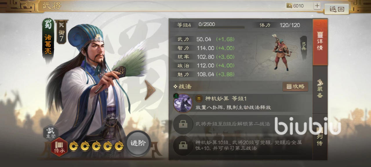 另外一套阵容走的是不同的路线,选择诸葛亮,黄忠,王平,廖化和法正,特点是整体需要的御值比较低,前期就能成型。而且武将获取要简单一些,培养起来非常方便适合平民玩家选择。诸葛亮利用自身的高智力成长为优势,利用谋略的伤害技能打击敌人,黄忠是非常优秀的普攻型输出选手。王平利用自身的战法和搭配的战法对敌方目标造成中毒效果,提供持续伤害能力。