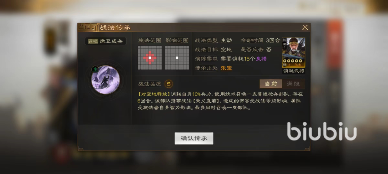 召唤型技能一向是游戏中非常罕见类型,除了可以造成持续输出之外,最大作用还在于作为肉盾去承受对方伤害。毕竟很多技能都是指向释放,如果召唤物抵挡了自然我方友军武将就少受到损伤,如果能够将对方核心技能挡下来更是能够起到很好的作用。在另外两个技能选择上,同样以召唤为主,小编推荐撒豆成兵和机略纵横。