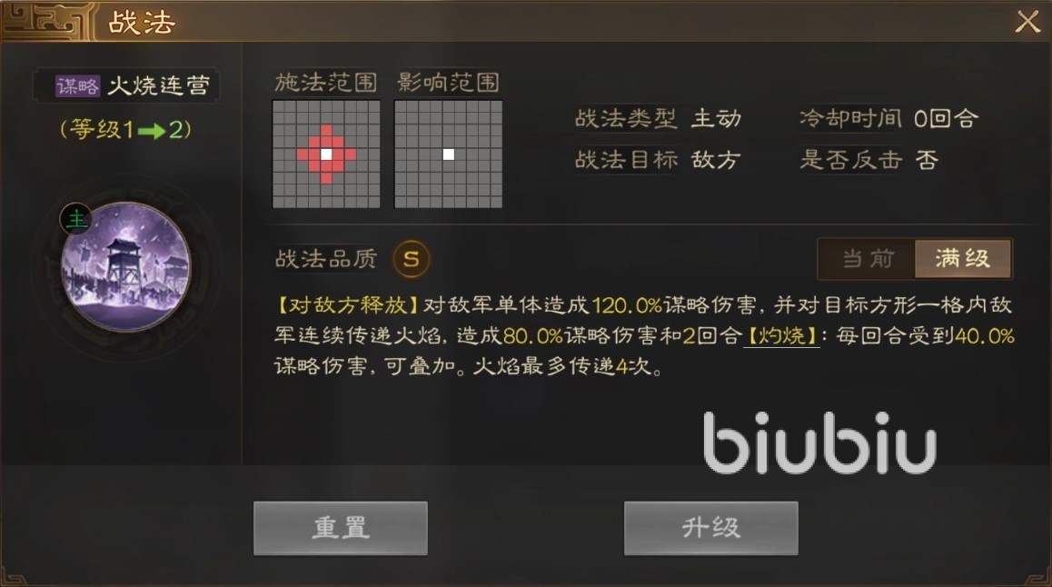 这样会产生连续性的伤害还有火烧效果,这个灼伤是会对敌方每个回合都产生谋略伤害。由此可见他的输出能力还是比较高的,而在阵容的搭配上可以尝试选择周瑜还有程普,孙策和小乔。
