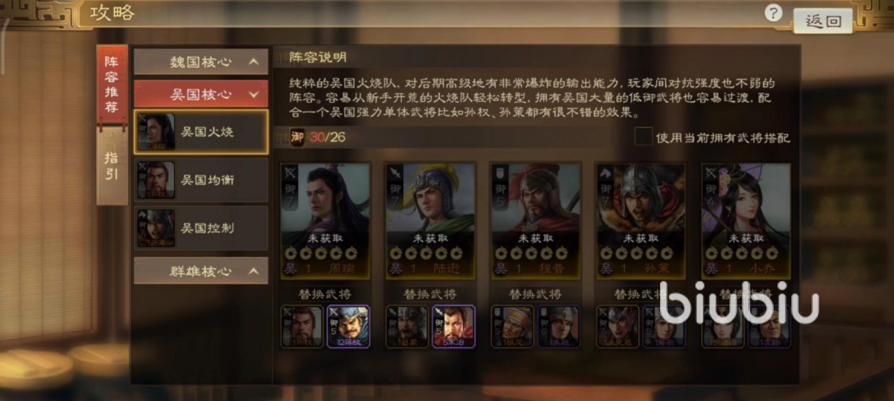 如果持有较多的武将也会更好进行过度的,在输出方面只要有孙策或孙权这种输出能力比较强的就能够打出好的效果。同时各位也可以尝试用这个角色与周瑜搭配上鲁肃还有吕蒙,这样就是前二人进行输出,后两位作为辅助。