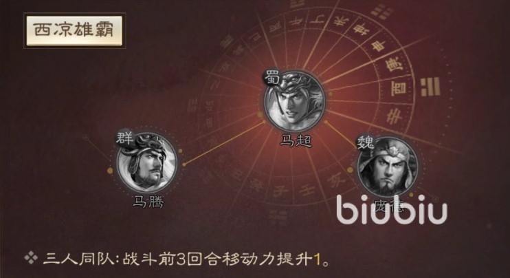 而在阵容的搭配上自然是要和相互间能够产生增益效果的人在一起,就比如他搭配上马超还有庞德,在对战前的三个回合中都会有移动力的提升。这两个角色一个用来打伤害,一个将增益效果发挥到更好,搭配起来是很合适。