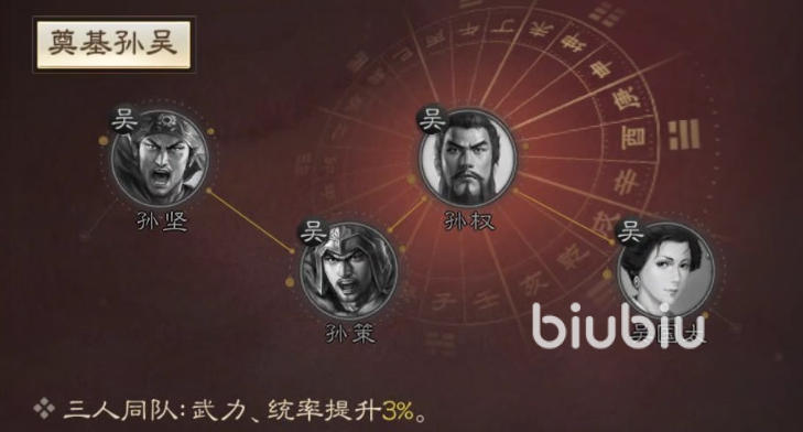 羁绊方面孙坚和可以孙策孙权吴国太组成,羁绊效果可以增加百分之3的武力和统帅率,羁绊效果总的来说一般,特性方面孙策的特性基本都是比较少的增幅特性,比较运有用的只有一个降低敌方伤害的特性。