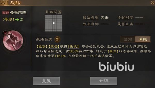 而且若是对敌人造成兵刃伤害后,还能直接对这个敌人再增加一次额外的伤害加成,并且给敌人带来56%的兵刃伤害,若是敌人处在孤立状态的话,这次兵刃伤害还可以再另外增加到112%并击退敌人。