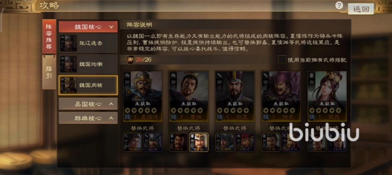 作为魏国首领,曹操代表了魏势力的特色,稳定均衡,能抗能打,所以旗下武将和曹操自己都是比较好搭配的,练度够了就能上,没有太多弯弯绕。