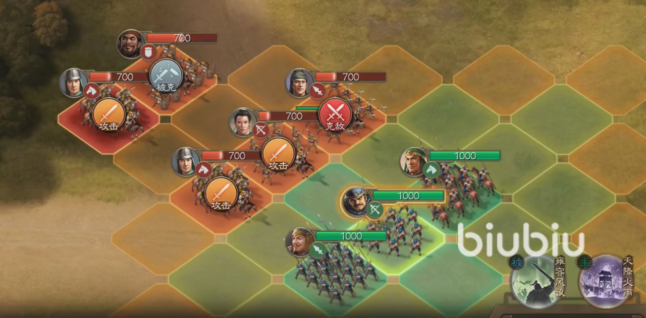 虽然武将基本面板不高,但是凭借着其技能与被动可以适用于绝大部分的对局。另外,要值得注意一点的是,一技能战法方面,由于释放范围自己贴脸的一格是不会受到干扰的,所以请优先对敌方较有威胁的角色远程释放,继而达到牵制的目的。