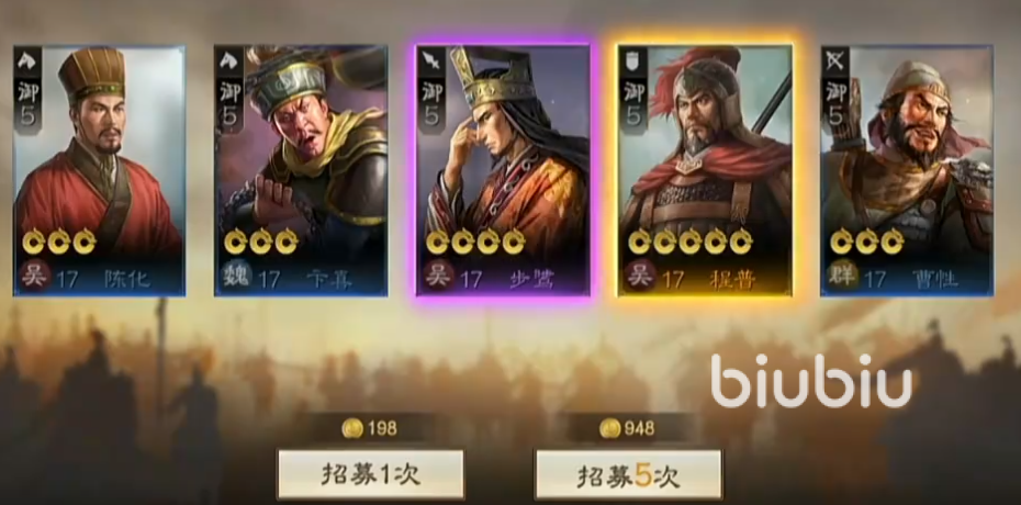 目前游戏内获取程普的方法有三种,首先第一种就是常规的招募,这个招募也能帮助大家获取更多高品质武将,只有名将招募才可以,其他是无法获取五星武将的,五连抽获取的概率会更高。第二种玩家们也可以在作战任务中获取,我们在新手阶段完成指定的任务就可以解锁专属武将奖励,其中就包括了程普。