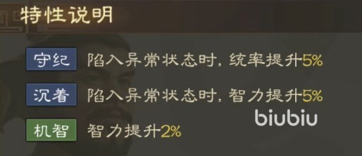 阚泽在自身陷入异常的时候统率值与智力各自提升5%,此外自身智力也有特性的2%加持。种种加成使得阚泽单体谋略输出在紫将中其实并不低,前期没有好的输出武将时,可以摆上阵用一用,丰富一下队伍中的输出类型,不至于都是兵刃类的。