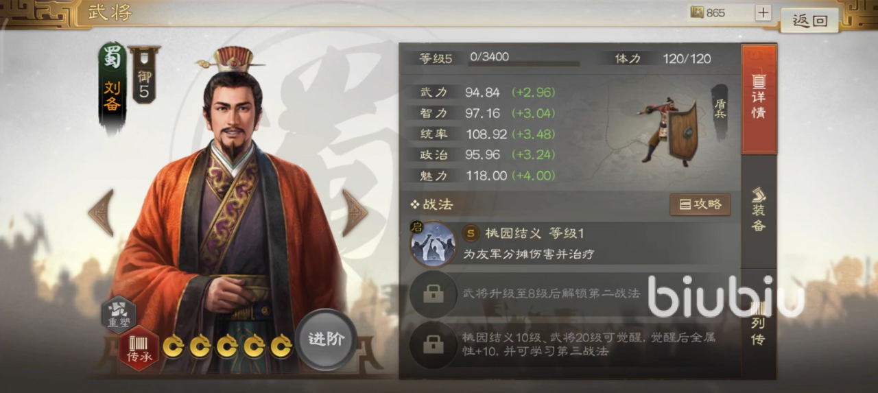 无论通过哪一种招募方式抽取到刘备之后,接下来如何使用就成为最关键的事情,同时我们也需要通过了解战法强度来确定抽取必要性。毕竟要消耗大量金珠,对于平民玩家来说还是要慎重选择。从属性上来看,其武力,智力,统率都非常出色,尤其是统率值更是达到了一流水准,此外还有很好的魅力成长,这些使得其无论是否出战都能有极大的发挥空间。
