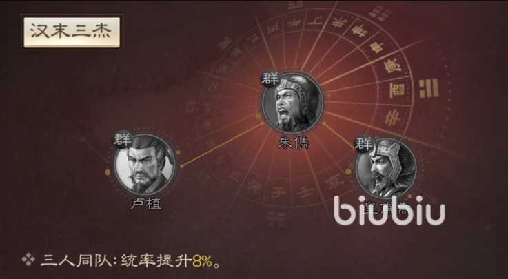 因为属于前排定位,所以在阵容搭配上,后面可以放很多群雄武将,例如和张角三兄弟一起出战,就是非常不错的组合。也可以和卢植等一起组成小队,触发羁绊提高统率值。而且从英雄特性来看,即使不出战,成为内政武将也有出色发挥,毕竟自身政治属性高,而且能提高铜币产量和降低征兵资源消耗。这样使用上就比较明确,如果前期能获得那就用他来开荒,如果中后期再抽取到,自己又不想走群雄路线,则将其用于内政或者是传承,都是很好的选择。