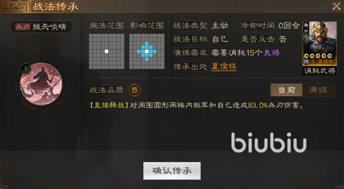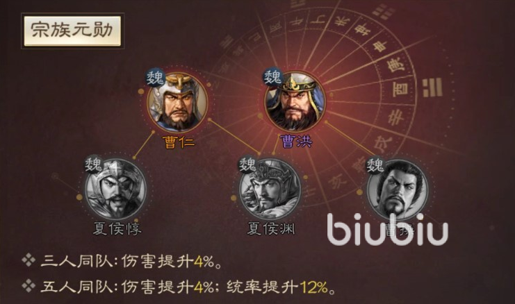 有了这样的前排肉盾,后续阵容搭配就会非常方便,无论是选择同样的兵刃输出或者是谋略输出都能胜任,最佳组合就是和曹仁,夏侯渊,曹操等一起组成曹氏宗族,这4名橙将再加上一个紫色的曹洪,可以获得伤害和统率值提升效果。此外,当传承之后获取的战法效果是对周围敌人造成群体冰刃伤害,缺点是自身也会受到等量的损伤,所以是杀敌一千自损八百的效果,只适合在有强力治疗时候应用。