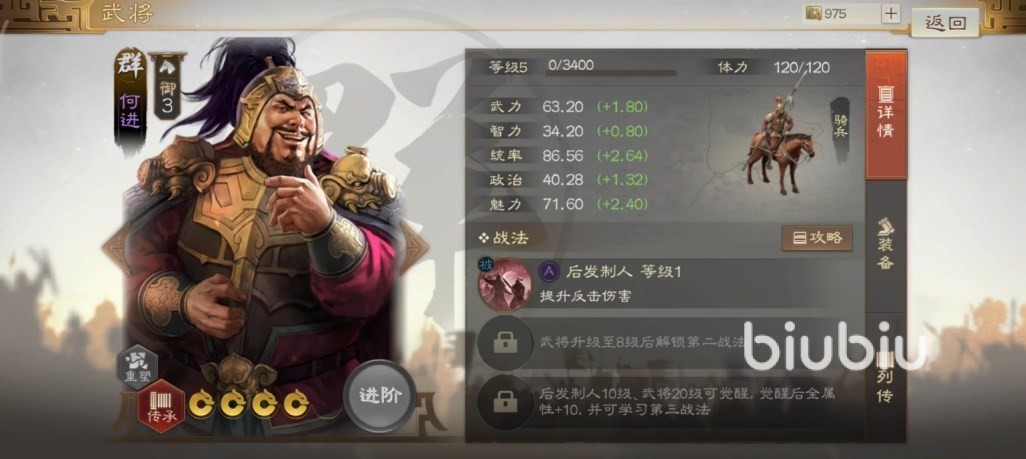 2023年02月10日 14:35 来源:火山止迈特凯不论是在什么游戏里面,其中设定出来的角色都会有其独有的特点,这期要分享的内容是三国志战棋版何进怎么样,他在这个游戏中设定出来的形象是个胖胖的人物,看起来并不好惹,但外在并不代表他的强度,而下面会从他的各项属性方面来说明一下这个角色的强度。