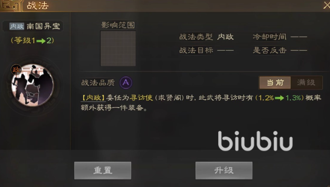 这个战法经过不断的升级之后就能够不断的提升获取名将以及装备的概率,因此士燮这个角色可以说是上是非常不错的。玩家会使用的情况下,士燮会给玩家带来无穷无尽的收益。