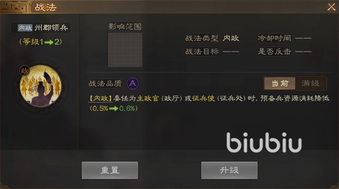 司马朗的战法州郡领兵属性就是进驻内政厅或征兵处是有加成,可以降低征兵资源的消耗,所以还是比较实用的,因为征兵是兵力的主要补充来源,而兵力又是武将队伍稳定的生命值基础,所以时常能用上。