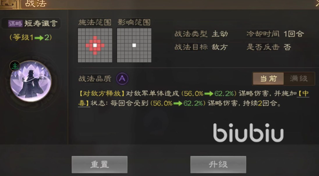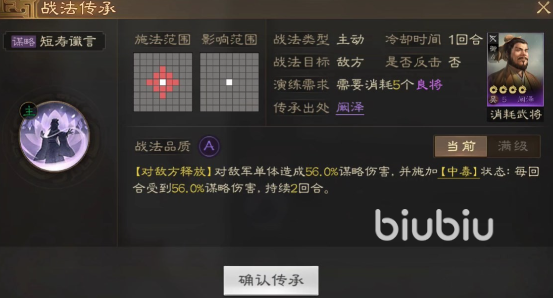 并且阚泽在攻击之后还会施加中毒的buff,因此敌军不仅一开始受到了伤害还会持续受到两回合的中毒影响,这在一场战斗当中可能会成为至关重要的一步,因此在阚泽的阵容搭配上,玩家只需要选择武力值强的可以保护阚泽的就可以。