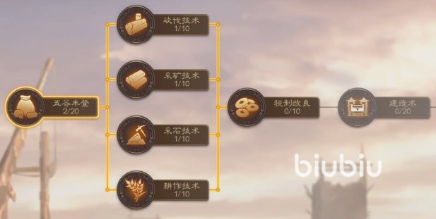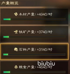科技优先建造选择伐木场、制铁场、采石处,这三个科技措施是最优先建造升级的,因为他们可以提升资源产出比例还会给到相当多的繁荣度,给大家打个比方,拿伐木厂举个例子,伐木场5级到6级时可以提高500的产出并且还会提高110的繁荣度。