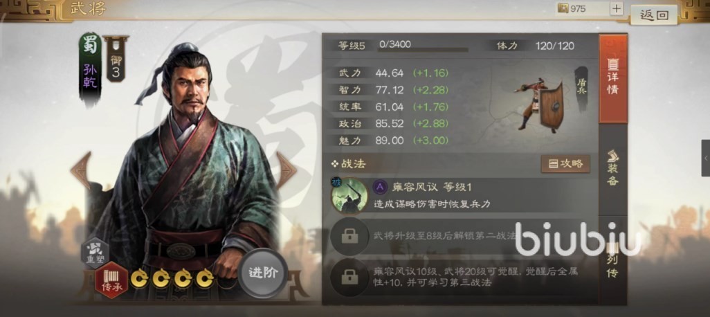 技能升满之后糜竺高额属性加成,能给队伍以极大的加成,与同样近战的孙乾、陈到的抱团,不仅可以获得同队兵力加成,也能形成一个相互增益的闭环,糜竺加属性,孙乾自带回复,陈到则可以增加大家的行动力同时附加额外伤害。