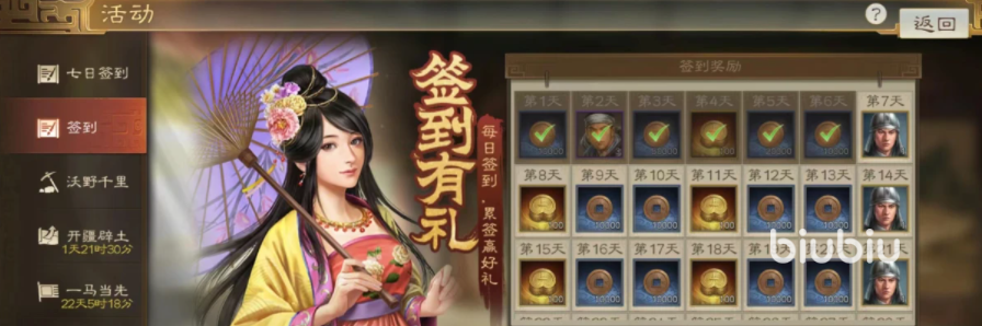 2023年02月13日 15:00 来源:水仙次快龙现在非常多手游都会增加签到玩法,能有效提升每日活跃度,对佛系玩家来说,上线签到收个菜也很不错。三国志战棋版签到有什么内容呢,这款策略类新作目前还未上线,但很快就要公测了,签到系统自然是不会少的,尤其是新上线版本,签到往往就会给很丰厚的福利。
