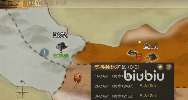 铁矿还有一个增产方法就是类似石矿场,去大地图上占领铁矿,占领玩法要派出军队,这就对玩家的武将和战斗力有要求,所以自身队伍军事实力的培养也非常重要,战斗形式和主线基本没什么不同。