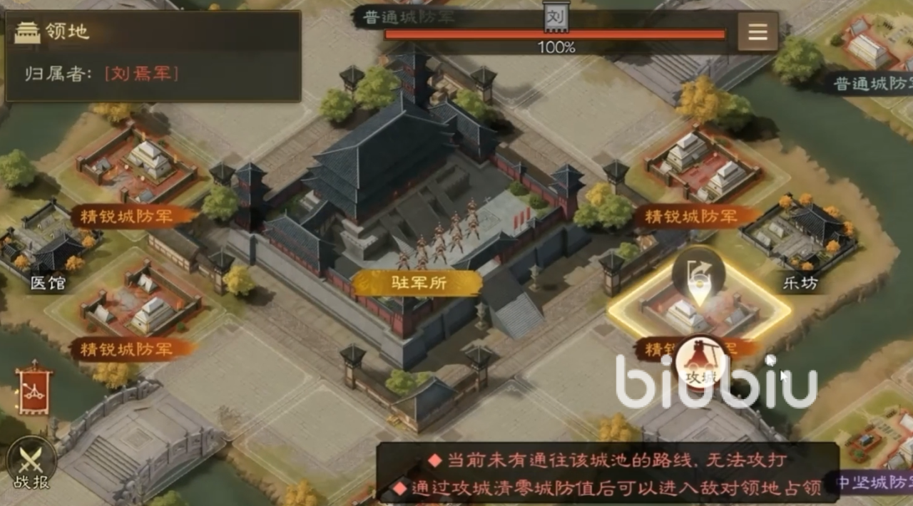 最后自己的城池还是要靠自己守护,在敌人进攻的时候最好的防御就是布置最强的将领来守住城池,各类守城的建筑建设好了,也能延缓强敌的攻陷节奏,等到有人支援的时候就能赶走敌人了。