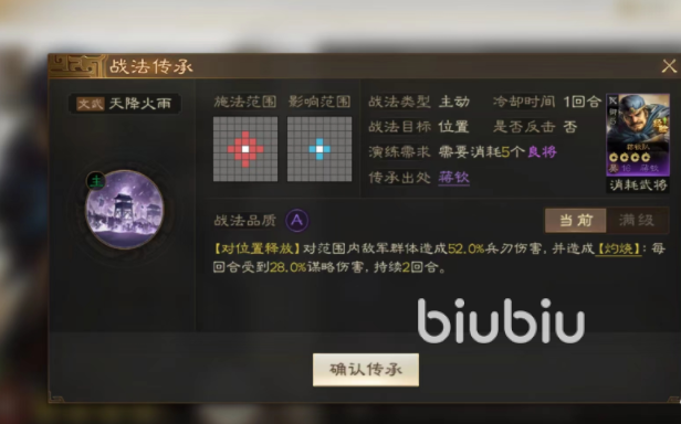 对于平民玩家来说,前期的A级战法就足够能打了,传承的玩法就是玩家可以在武将的页面看到自身的技能,而消耗1张相应角色以及一定数量的良将,来开启其技能的传承,之后就能让其他武将来学习这个技能了。