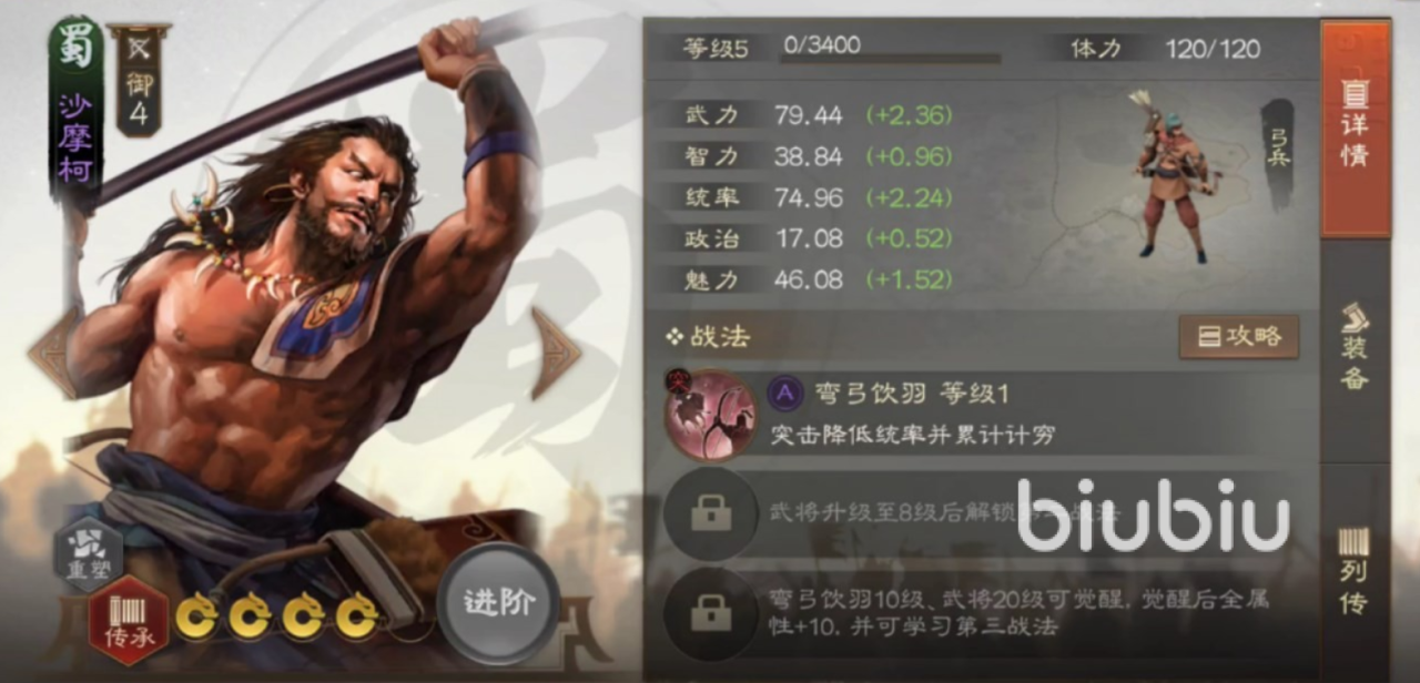 第三天的沙摩诃名字很有佛学的意味,该角色也是紫色的角色强度也还可以,没角色的时候也能解决一下燃眉之急,但是潜力不足是紫色角色的共病,第四、五天的紫色角色骁城卫,千万不要养,这个角色是作为战法学习的材料存在的,可以快速获取战法点,类似经验包的存在。