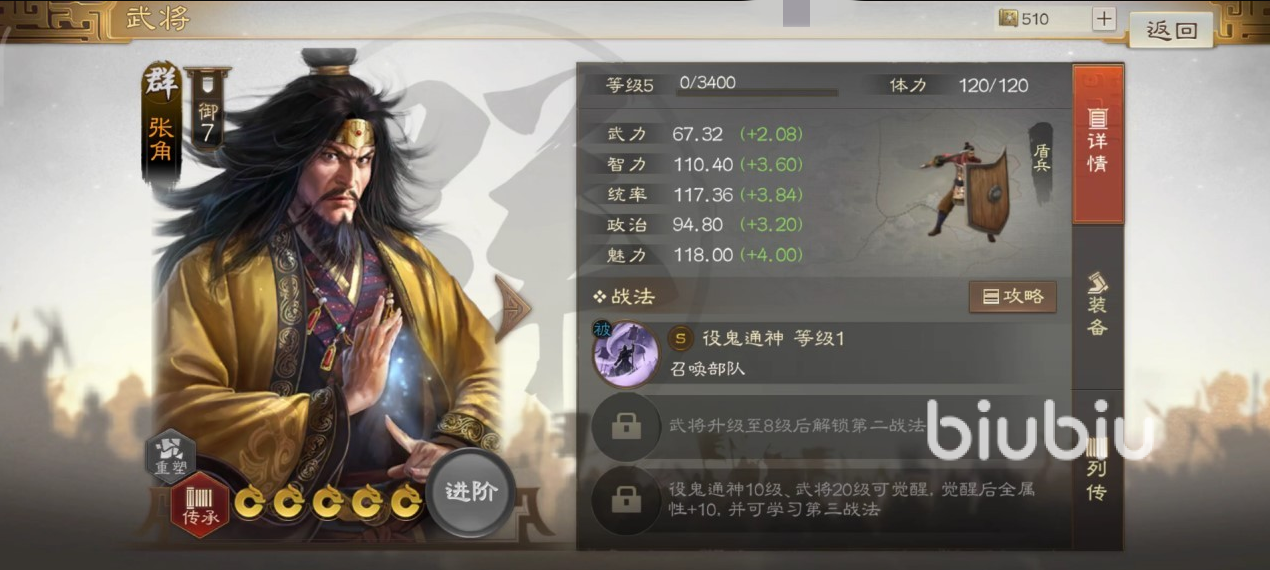 排名第四为张角,将张角放到核心武将中,就是因为小编认为他所代表召唤流绝对是游戏中一股不可忽视势力。对于这样战棋类游戏,每一格上单位都极其重要,很多攻击都是范围型,而张角,张宝,张梁三兄弟可以召唤出军队放到棋盘上。不仅起到了承担伤害重任,还能造出非常有效输出,很多玩家没有面对过这样的召唤流玩法很可能吃大亏,对于平民玩家来说不失为一种可尝试路线。