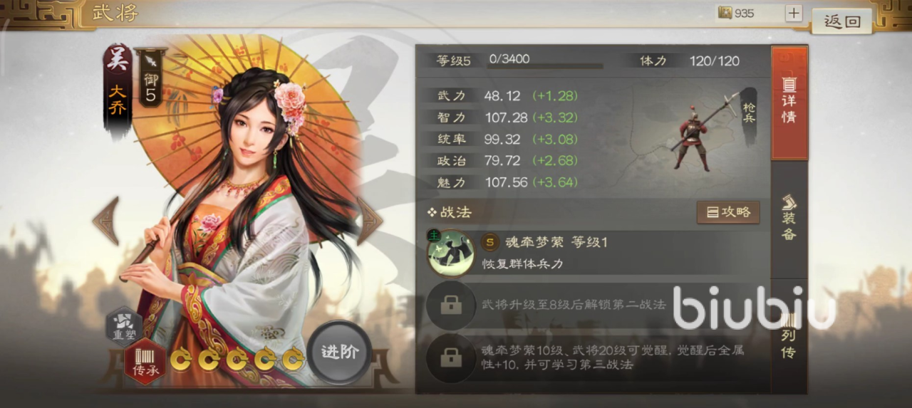 在阵容搭配角色的选择上,小编推荐5名武将分别是孙权,孙策,黄盖,大乔,程普,这样整个阵容既有辅助又有前排肉盾,在伤害方面也极其可观,做到了非常均衡。无论是用于开荒高级土地,还是后期和其他玩家竞技、攻城,都有极好表现,最关键优势在于发挥非常稳定,不依赖几率。孙策绝对是核心输出主力,自身战法除了强力单体伤害之外,还能附加震慑和击退效果,这两个效果都能极大限制对方发挥,属于有输出有控制类型。