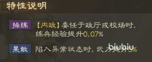 这个角色拥有两种用途,首先,我们可以将其用在战场上,在异常状态时,武力值将提升5%,这个能帮助我们提升兵刃伤害能力。传承战法更是不可忽视,与其他武将拥有同等的实力,在很多四星级武将中都属于一个普遍偏高的水平。他虽然没有同队加成,但是自身实力还是很不错的。另外,由于它是一个文臣,玩家们也可以将其用在内政上,将其委任于政厅或者是校场的时候,练兵经验都将提升0.07%。