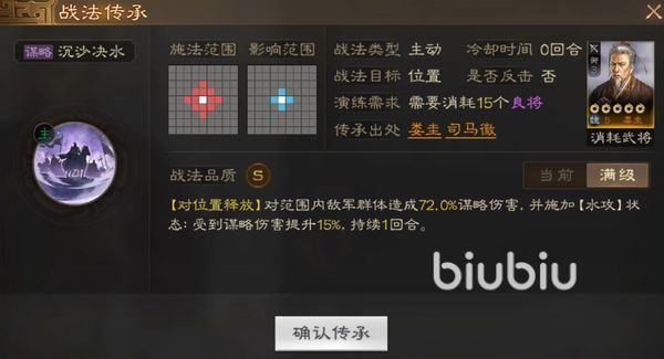 另外还有一个叫做尘沙决水的技能也是比较不错的,可以直接使用角色的智力对敌人造成72%的伤害,而且还附带水攻效果,并且还能让角色自己的伤害提高15%,