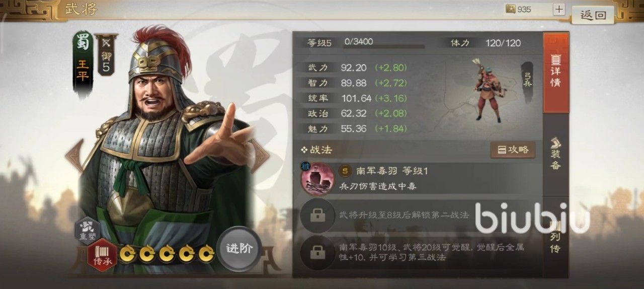 毫无疑问张让是站在前排承伤的角色,根据其技能特点,搭配一个能造成中毒效果的武将是再好不过了。紫将中东吴的阚泽就不错,后排弓兵类武将。橙将中蜀国的王平也能造成中毒效果,而且能叠4层。条件允许自然是橙将更好的,没有的紫将也行。