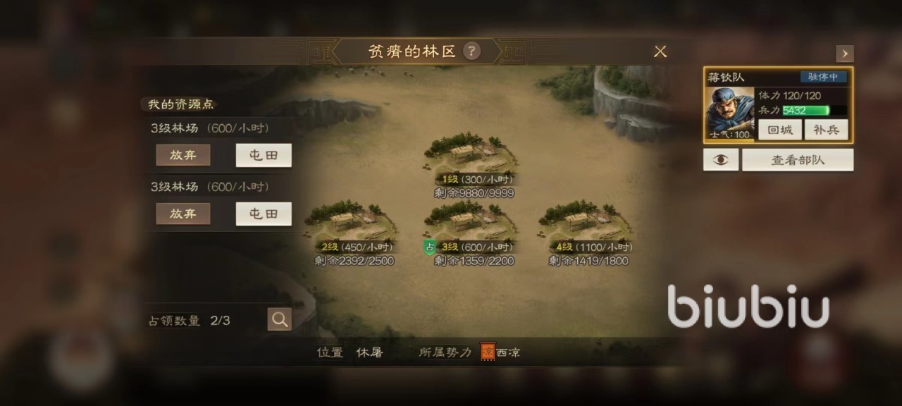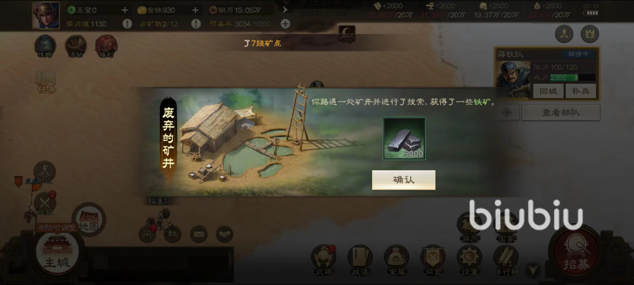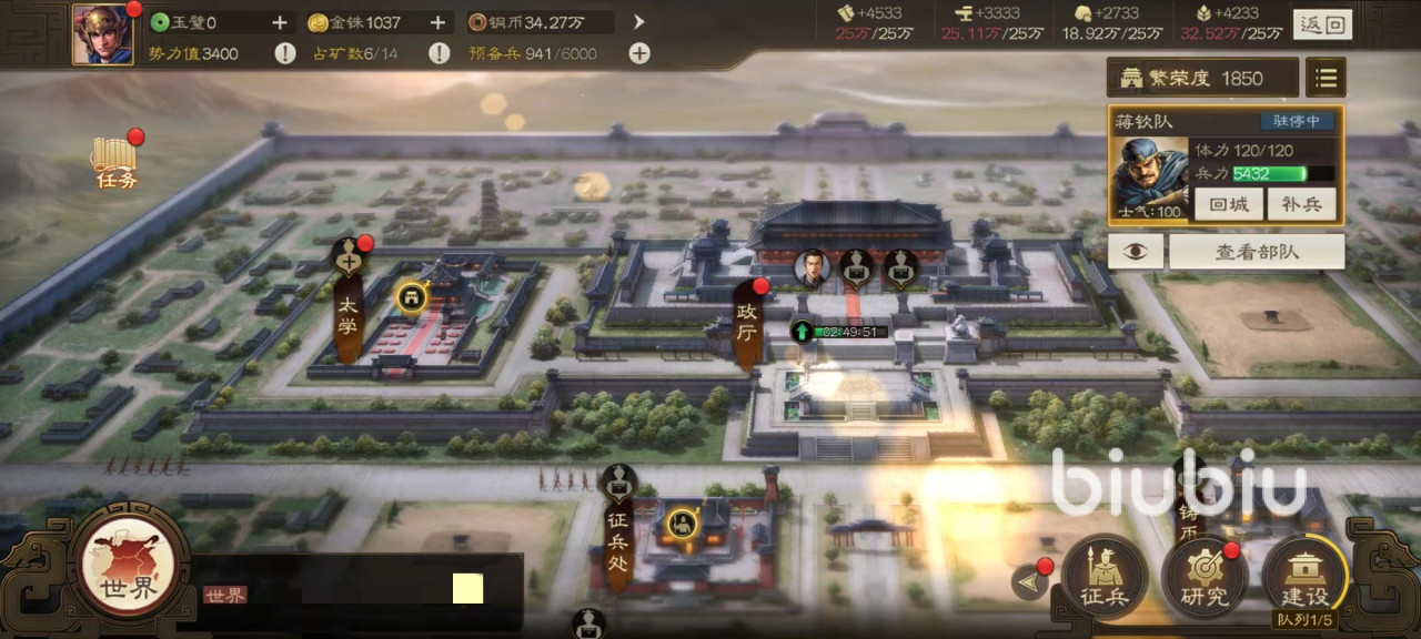 第二项需要做的事情就是在主城中尽量去提升建筑等级,为接下来资源获取、兵种战力提升和其他各项功能提供基础。尤其是要将政厅等级提升上去,提高统御值之后才能更方便组成阵容搭配,不然即使抽到武将,也难以全部编到队伍中。第三项需要做的就是快速占领低级土地,这也是前期开荒最关键一项内容,有了资源才能进行后续发展。不需要去抢夺其他人资源,只要在地图中多跑一跑,将木材,矿产,农田等均匀占据就可以。