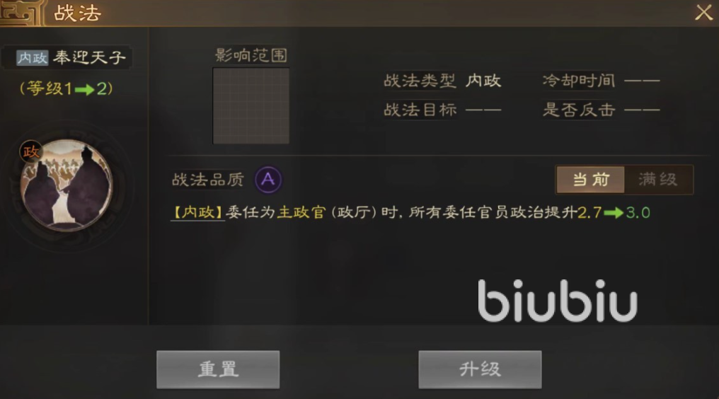 那么自然这个角色的战法也肯定围绕着游戏当中的内政,玩家在获得董昭之后,将这个角色委任为政厅主政官时能够非常有效的提升官员的政治能力。目前朝堂上政治属性不高的角色都能有效地获得属性的提升,不费任何力气。