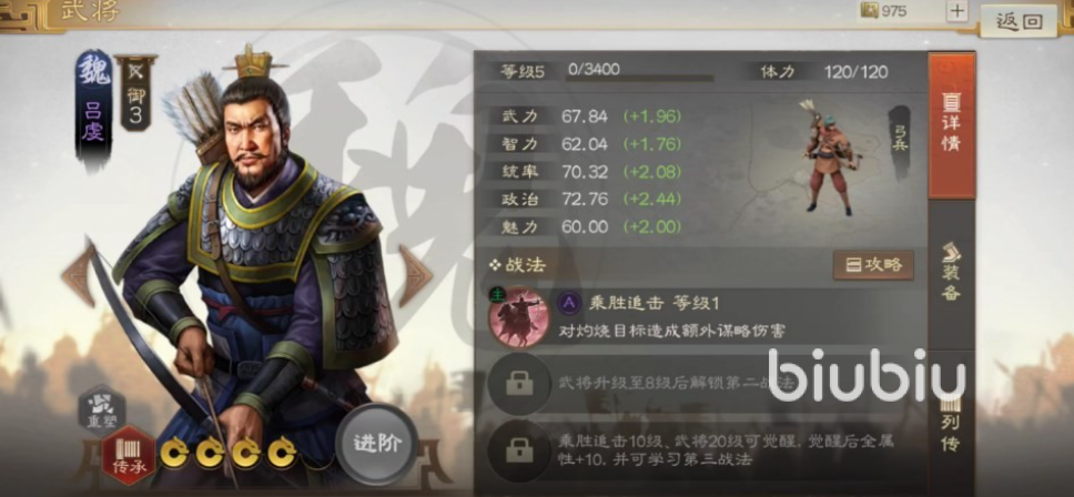 总的来看吕虔这个角色除了属性值不高以外其余的方面都是没的说的,那么玩家在游戏当中也同样要注意不要因为属性值不高就错过了很多精兵良将。
