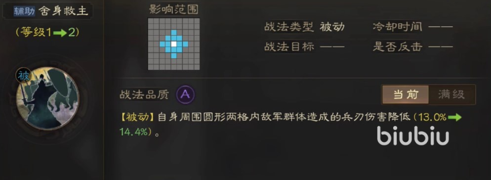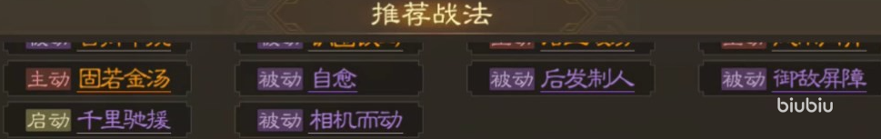 这里主要说的就是战法,曹昂的战法非常适配他的兵种,他拥有两个战法,这两个战法的效果都是减伤敌人对自己的伤害吗,加在一起来减伤率可以达到百分之39,这个减伤率在紫色武将里是绝不仅有的,这让他在前排变的异常能抗。