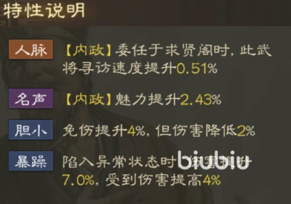 王朗这个角色的特性除了围绕着求贤阁寻访速度,还能够有效的提升自己的魅力,魅力数值越高越能够吸引游戏当中比较有名的名将。