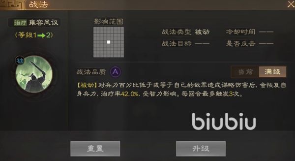 建议大家可以带上雍容风议,只要敌方兵力没有自身高,或者和自己处于同一水平线,都是可以打出谋略伤害的,而且还能恢复自己的兵力,这也算是一举两得了。