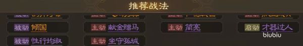 除此之外还能带上刮骨疗毒,飞鸿羽翼,仁德载世,洒豆成兵,献金赠马,简亮,才器过人,性行均淑和坐守孤城等战法,这些在游戏中也能对角色起到非常重要的作用,要是不知道该怎么去选择的玩家,可以直接使用这几个。